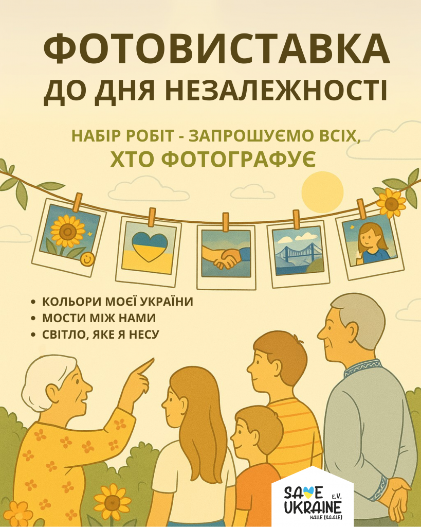 Відібрані фото будуть надруковані та розміщені під час святкування у дворі Save Ukraine e.V. (Harz 51, 06108 Halle), залишаться там на тиждень. Після автори можуть забрати свої роботи за бажанням.
